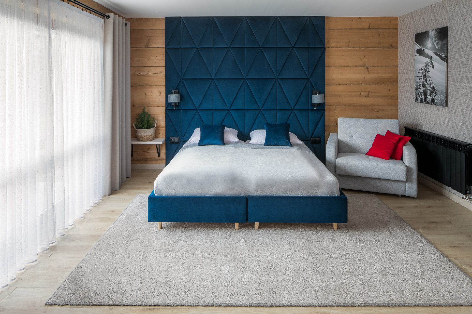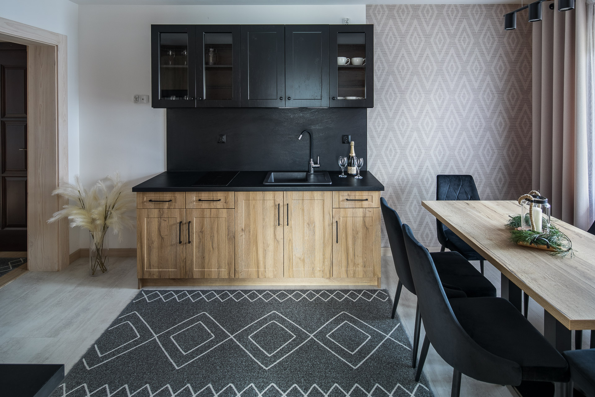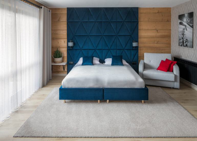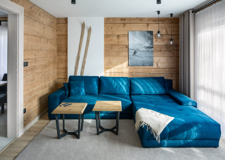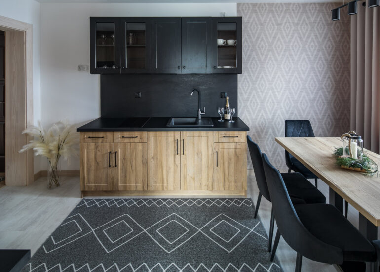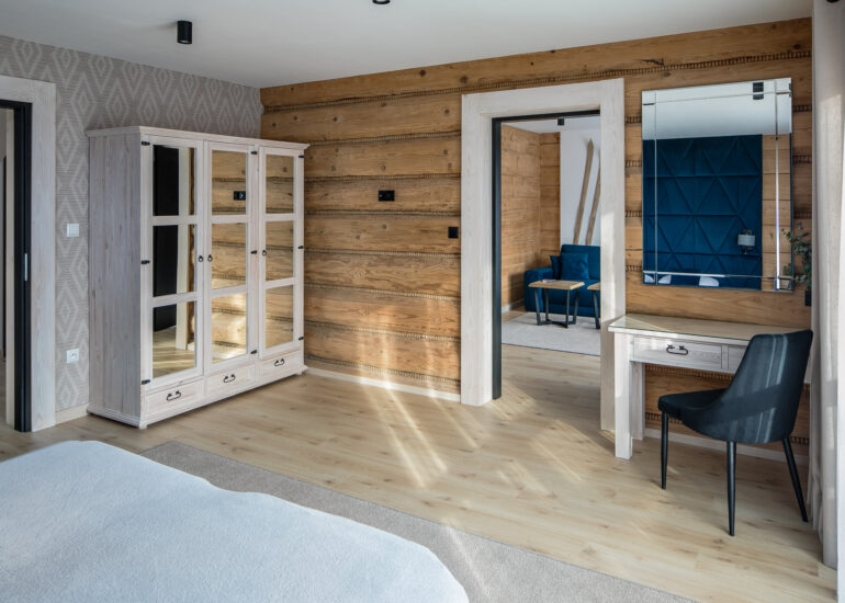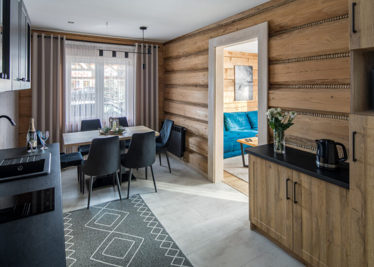 Apartament rodzinny z sypialnią, salonem, kuchnią i łazienką